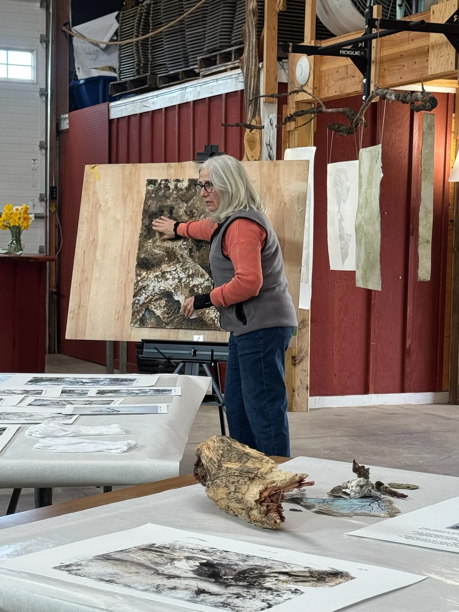 “Unearthed” is an ongoing project by artist Pamela Sloan, who buries paper in symbolic locations, allowing the soil erosion to transform the paper. Once removed from the soil, Pam determines whether and how to modified what remains.